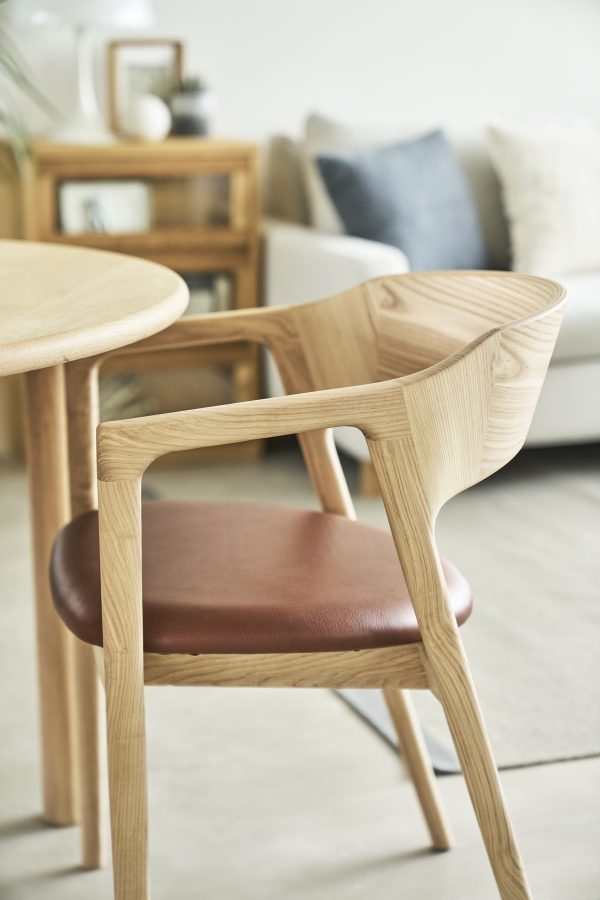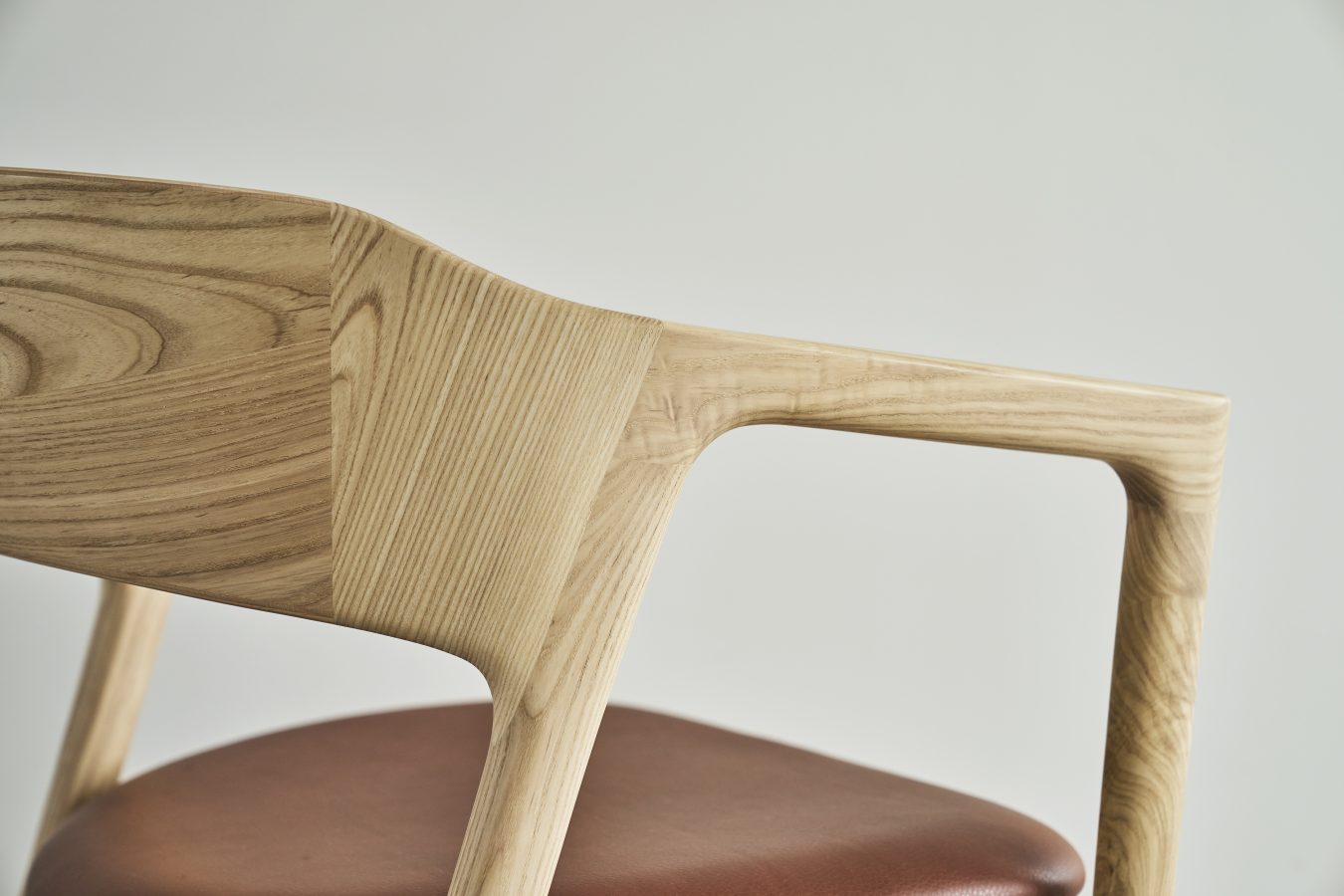 The beloved chair is Jin Kuramoto's modern reinterpretation of the classic Scandinavian horseshoe chair, designed to encourage users to relax and linger at the dining table.