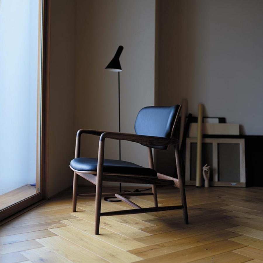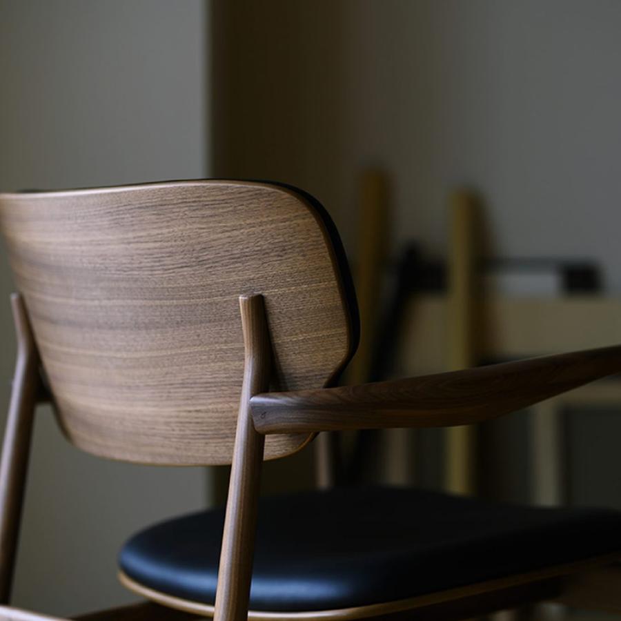 The hallmark of the Meguro collection is its Lounge Chair, which features a deeply comfortable backrest that instantly invites you to sit, and sculptural armrests designed to gently cradle your arms.