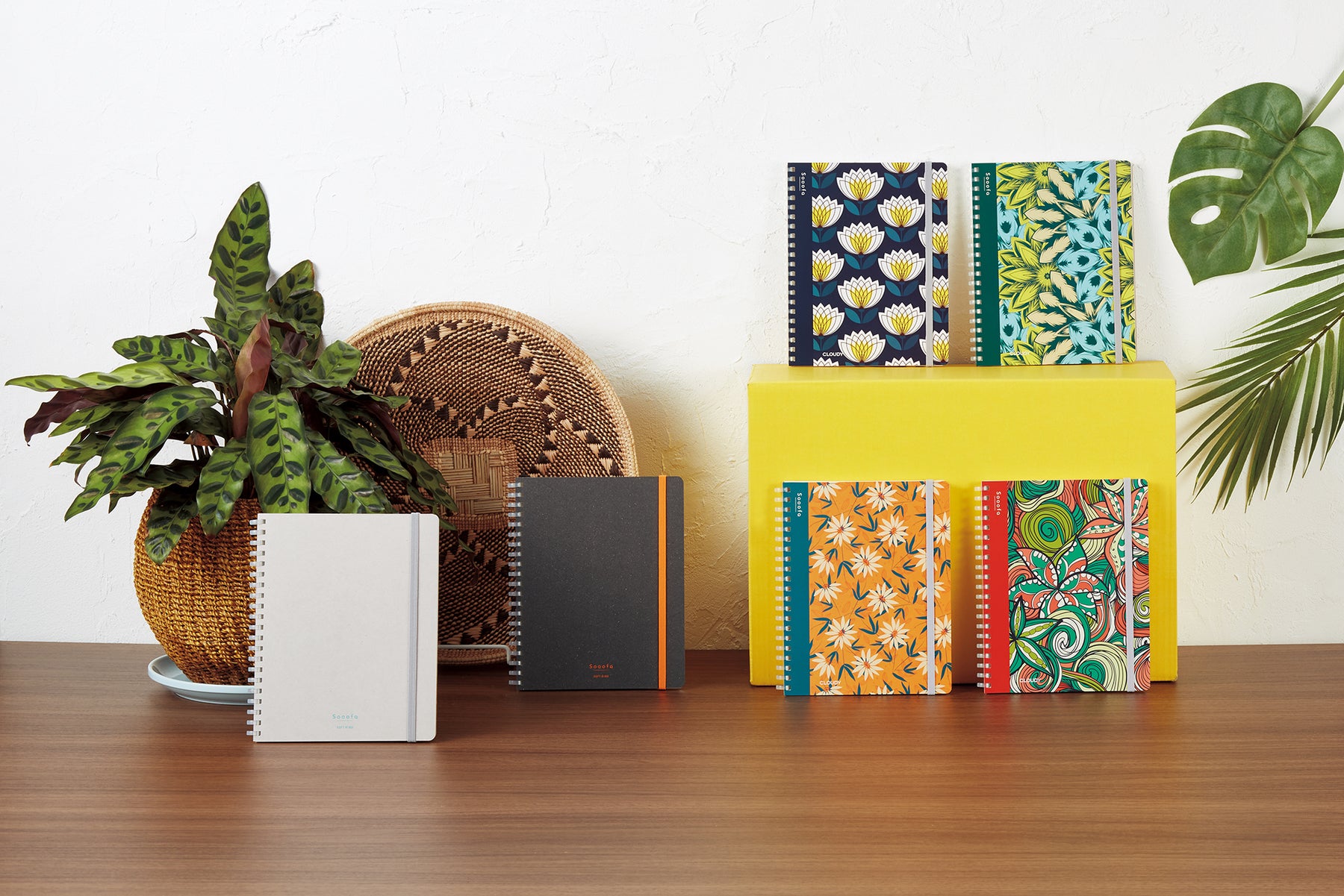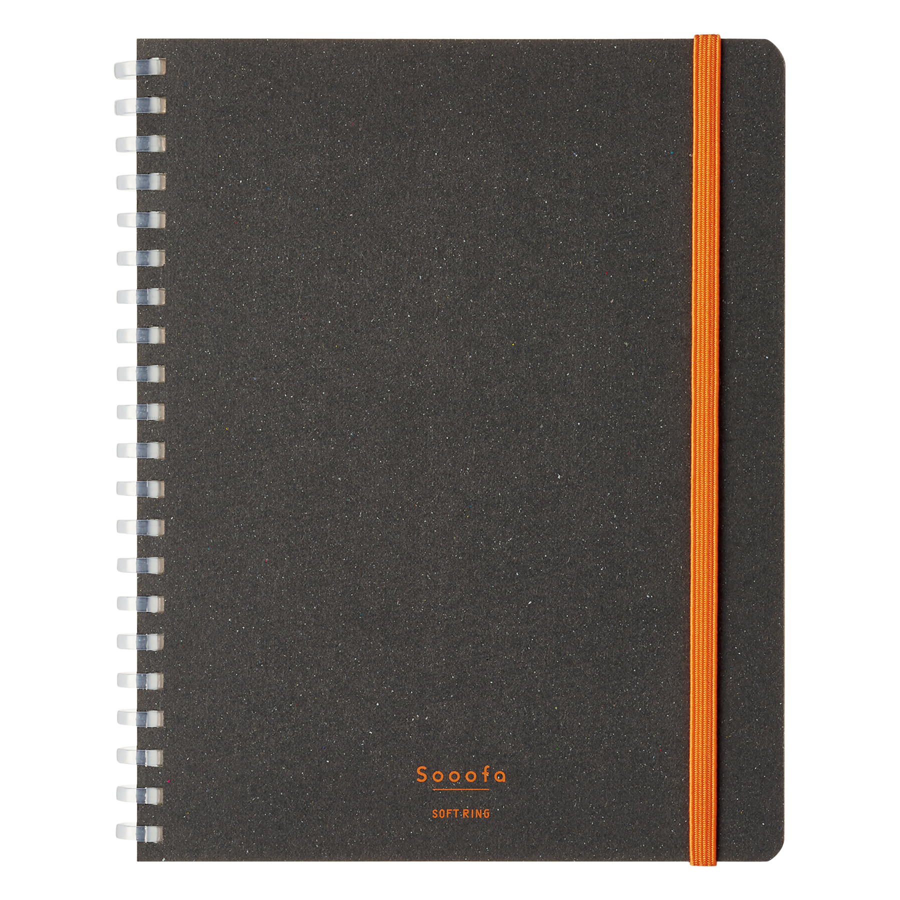 This notebook features a simple and smart design with a perfect touch of relaxation. It incorporates Kokuyo's unique "new sensation soft ring" and uses biomass resin derived from sugarcane, making it environmentally friendly. The notebook opens flat for easy writing and can be used comfortably even in tight spaces. The D-shaped ring prevents bulkiness, and it offers 80 pages for ample writing. Each page can be neatly torn out thanks to the micro-perforation. The 4mm grid lines in warm gray and the natural texture of the cardboard cover, along with the elastic band, make it extremely user-friendly.