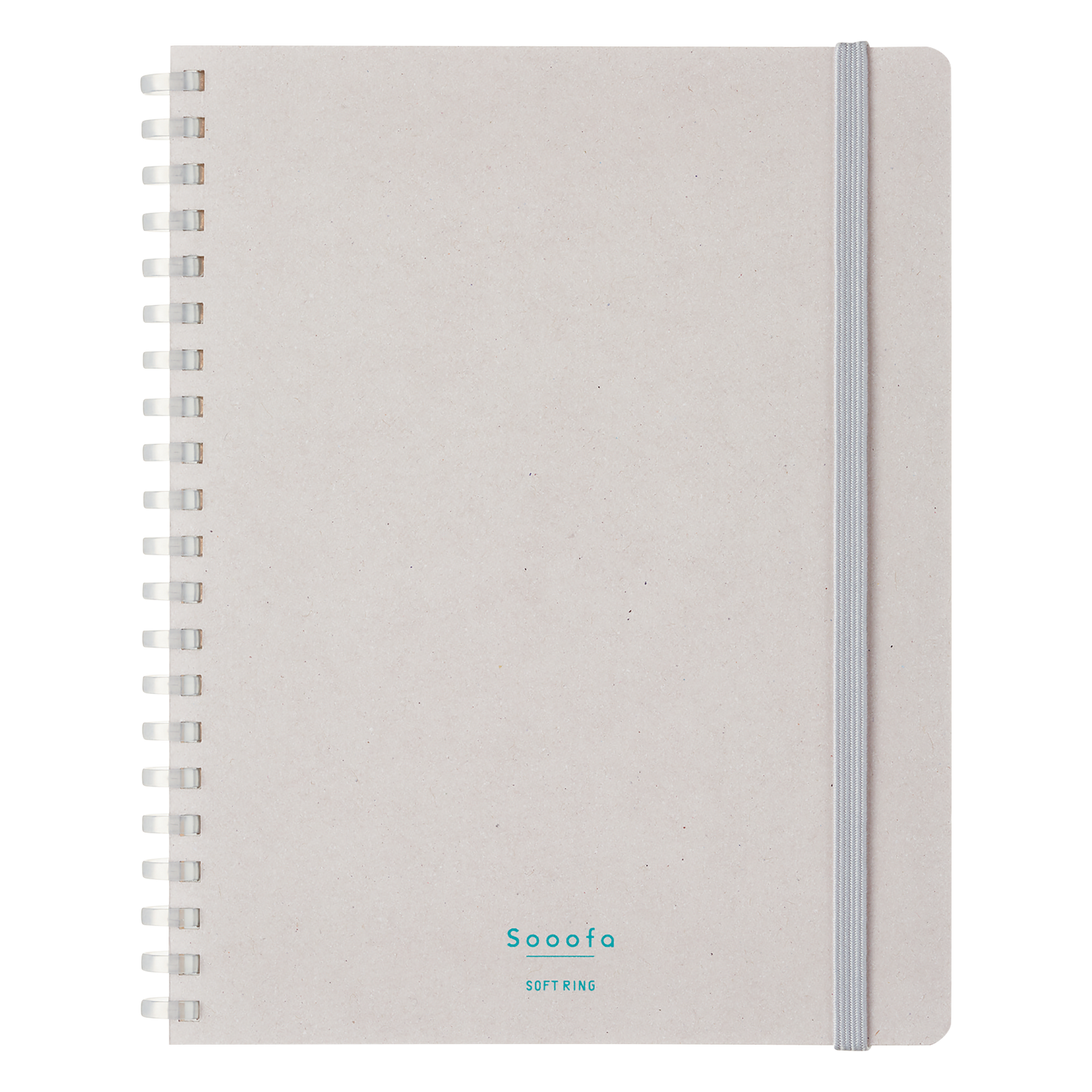 This notebook features a simple and smart design with a perfect touch of relaxation. It incorporates Kokuyo's unique "new sensation soft ring" and uses biomass resin derived from sugarcane, making it environmentally friendly. The notebook opens flat for easy writing and can be used comfortably even in narrow spaces. The D-shaped ring prevents bulkiness, and with 80 pages, it offers plenty of writing space. The micro-perforated pages allow for clean and easy removal. It has 4mm grid lines in warm gray and a natural textured cardboard cover, along with an elastic band for added convenience.