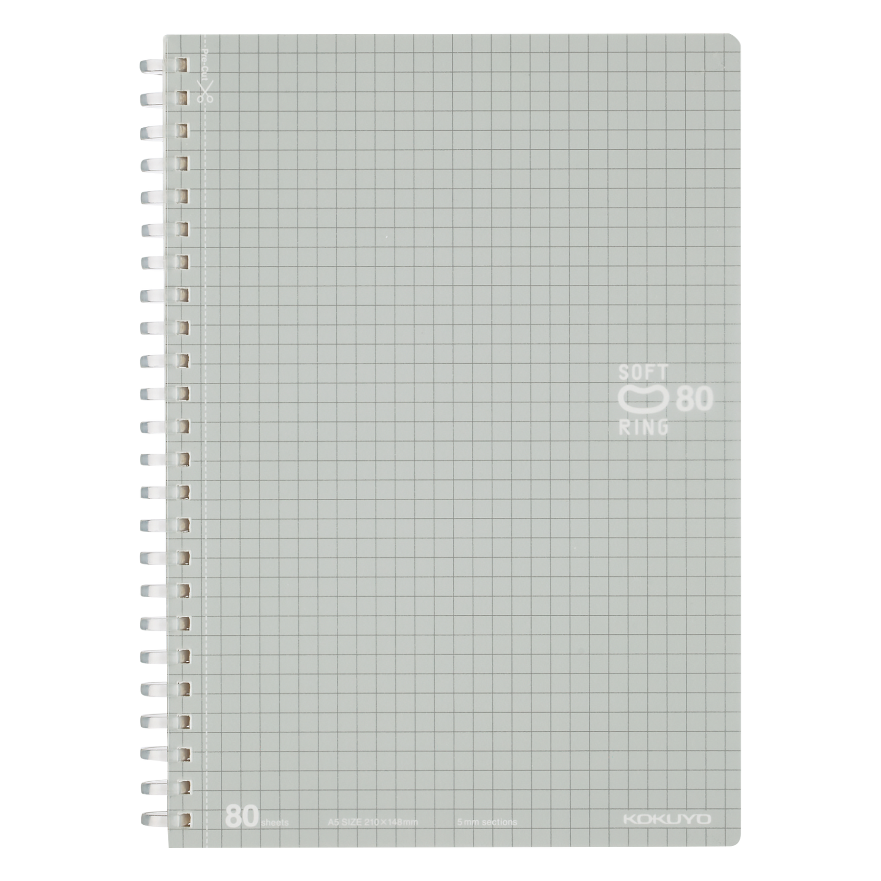 This is a ring notebook featuring Kokuyo's innovative soft ring design. It opens flat, making it easy to write on and convenient to use even in tight spaces. The D-shaped compact rings prevent bulkiness. With 80 pages, it offers plenty of writing space, and the micro-perforated pages allow for clean and easy removal. Additionally, it features 5mm grid lines, perfect for drawing diagrams and tables, making it an exceptionally user-friendly new standard notebook.