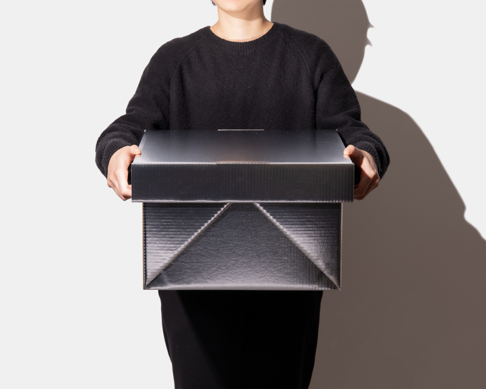 The brand "CARTON 2.0," a collaboration between IZAK and THINK OF THINGS, leverages IZAK's technical expertise, building on their innovation of Japan’s first functional cardboard in 1980. This archival box is made from specialized cardboard designed to transport seafood and refrigerated items, providing insulation and protection against humidity. Its advanced structure is so robust it can even hold water. Versatile in its uses, it serves various everyday purposes, including storing important documents or clothing, keeping food cool, functioning as a laundry box, or even doubling as a planter box.