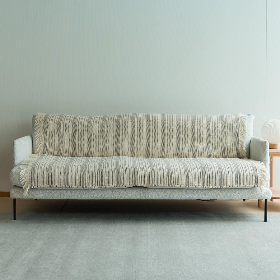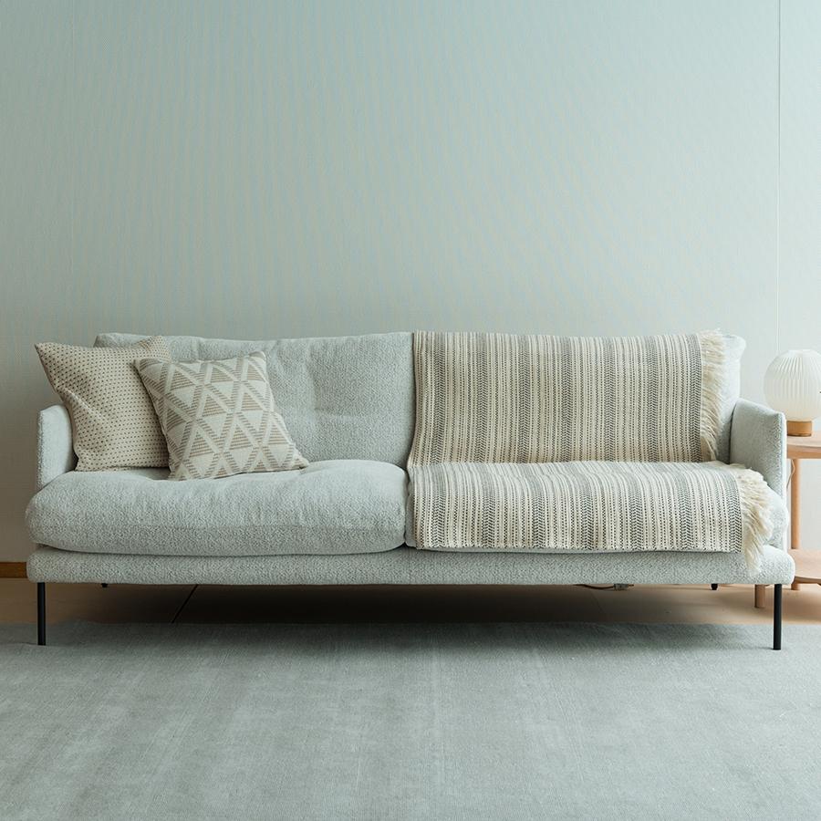 This blanket features a modern jacquard weave design, offering a unique texture and depth that cannot be achieved with printing. The detailed stitch patterns and fringes add a touch of elegance to any space. Perfect for coordinating with your sofa or bedroom, this blanket is crafted in Portugal using traditional techniques in a family-run factory surrounded by nature. The warm and high-quality fabric makes it an excellent choice for those who appreciate refined interior decor.
