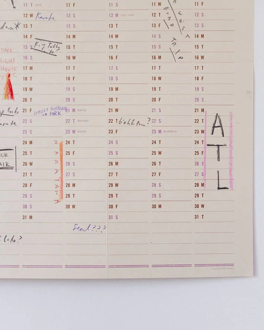 Time is intangible—it's always moving forward, yet we can't physically see it. It's time to make your time visible. Instead of the usual monthly or weekly format, this is a calendar that allows you to see the flow of time on the scale of an entire year. Seeing the full year at a glance makes it easy to plan projects, schedule trips, and record special dates. It empowers you to take control of your time, eliminating that frustrating feeling of "Another year has just flown by!" Stop burying your schedule in your computer or phone. Stick your plans up on the wall where they can be shared and easily referenced by everyone. This calendar features a small space for quick notes or sketches on every single day. With a design that blends seamlessly into any office or home décor, planning your schedule becomes a pleasure.